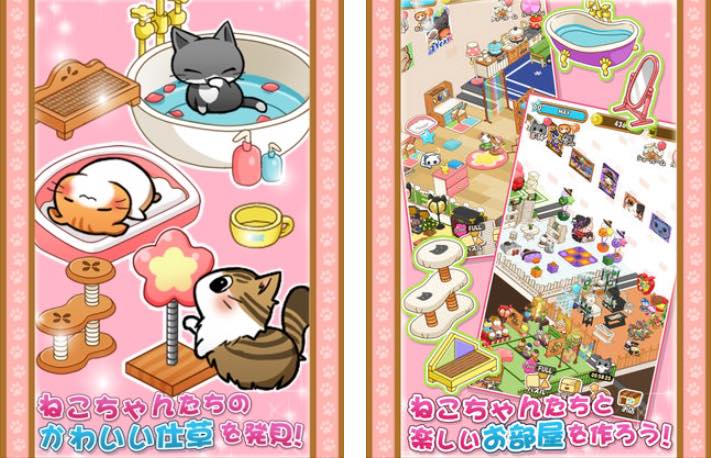可愛らしい猫ちゃんの育成ゲームを楽しみつつ、キャットタワーや爪とぎといった猫部屋ならではのアイテムをコーディネートして、楽しいお部屋を作っていくことができます。